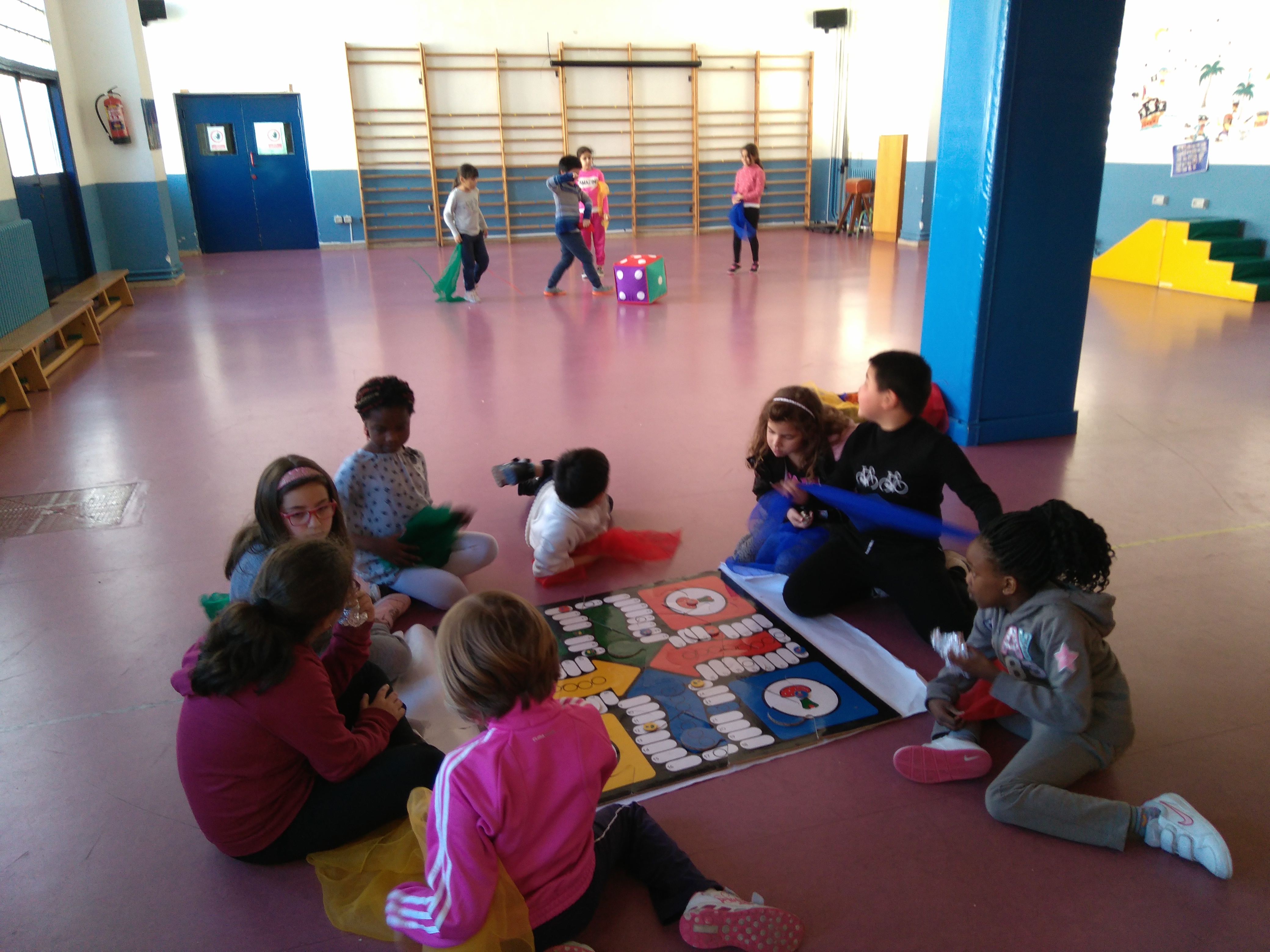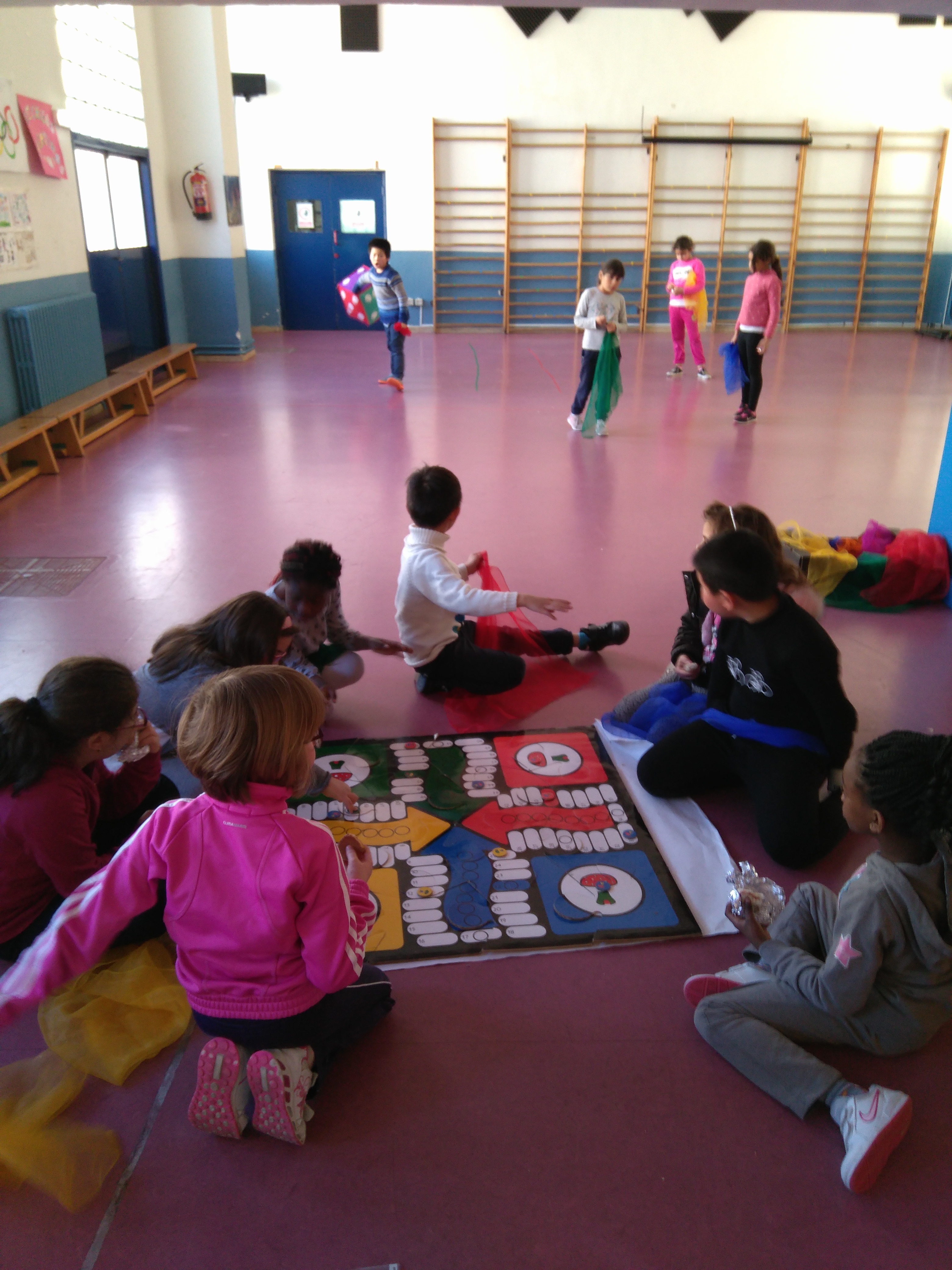 Los niños y niñas de 1º y 2º del cole hemos jugado un día a la semana en la hora del recreo a la oca, el parchís y el domino.
