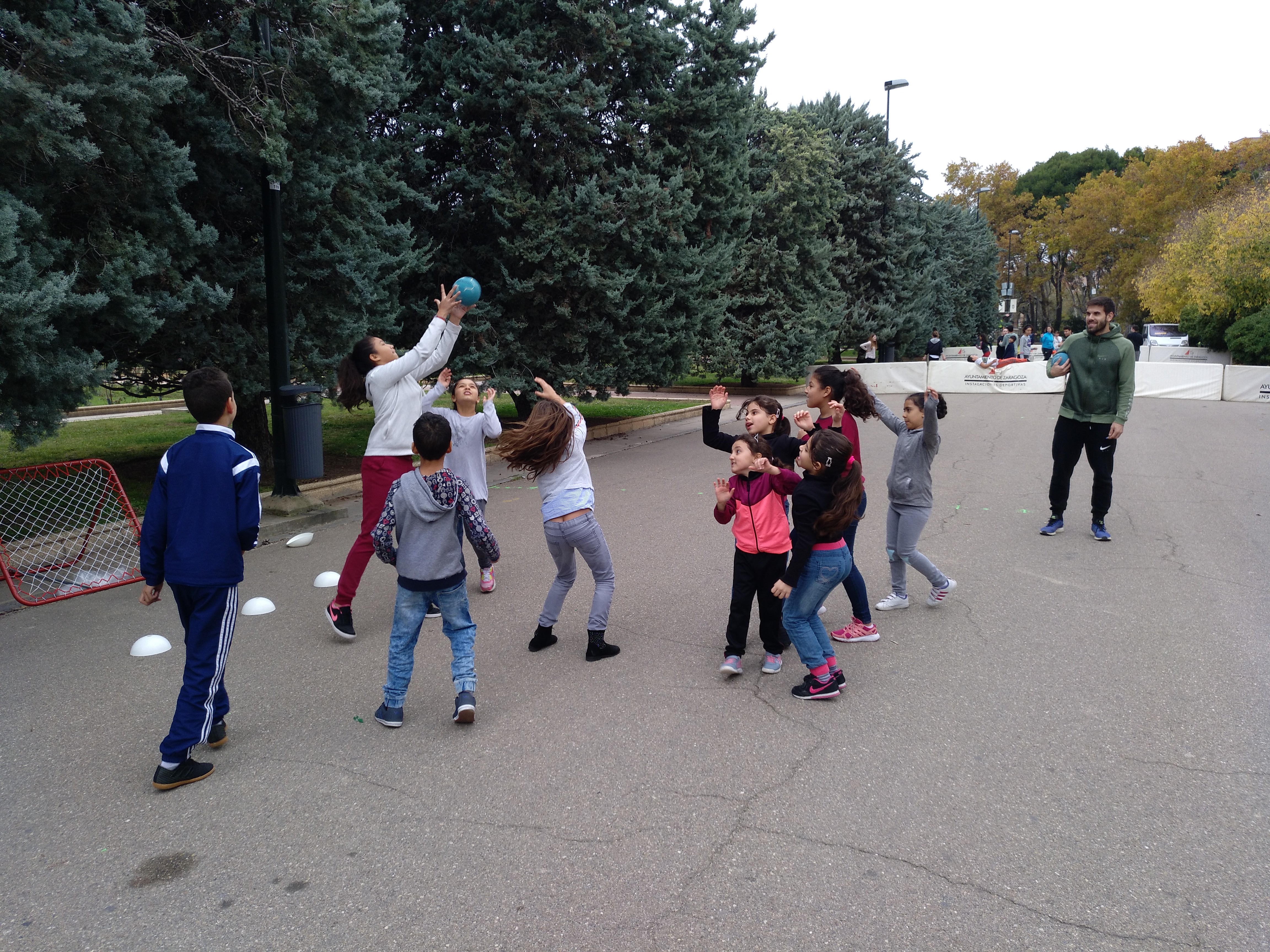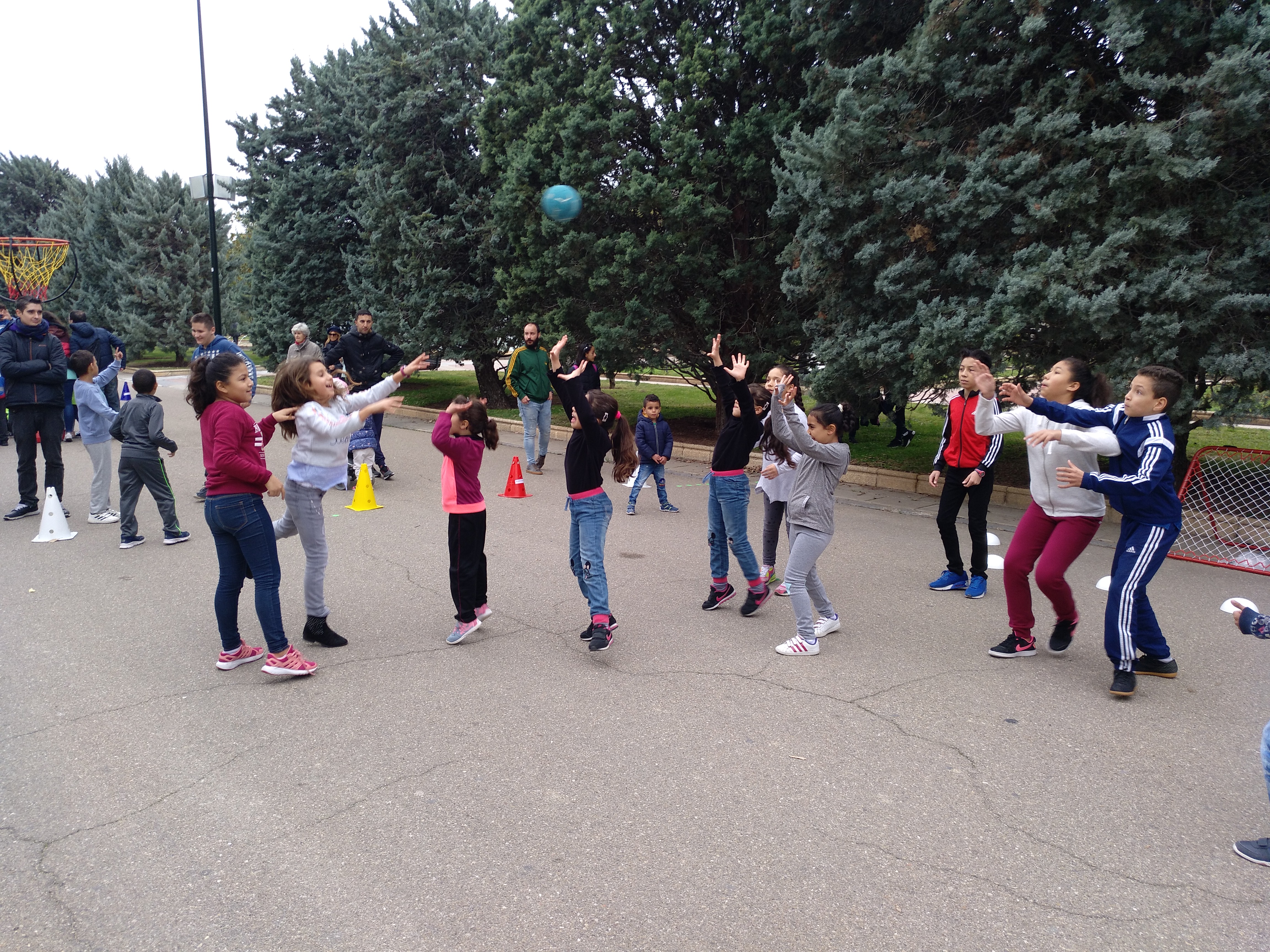 Desde el Ceip Antonio Beltrán Martínez, como escuela adscrita al programa Escuelas Promotoras de Salud y aprovechando el evento creado por la Red Aragonesa de entidades sociales para la inclusión, que se celebró este sábado 17 de noviembre decidimos participar en la celebración del día internacional de los Derechos de la infancia. Esta vez se celebró el derecho a la salud y al medio ambiente, y que mejor manera que a través del deporte y los juegos para desarrollar la salud física, pero también la emocional, ya que el ejercicio de la primera suele implicar conexiones y transferencias con la segunda. De esta forma luchamos contra el sedentarismo y el uso descontrolado de las tecnologías (tablets, moviles, video juegos…)